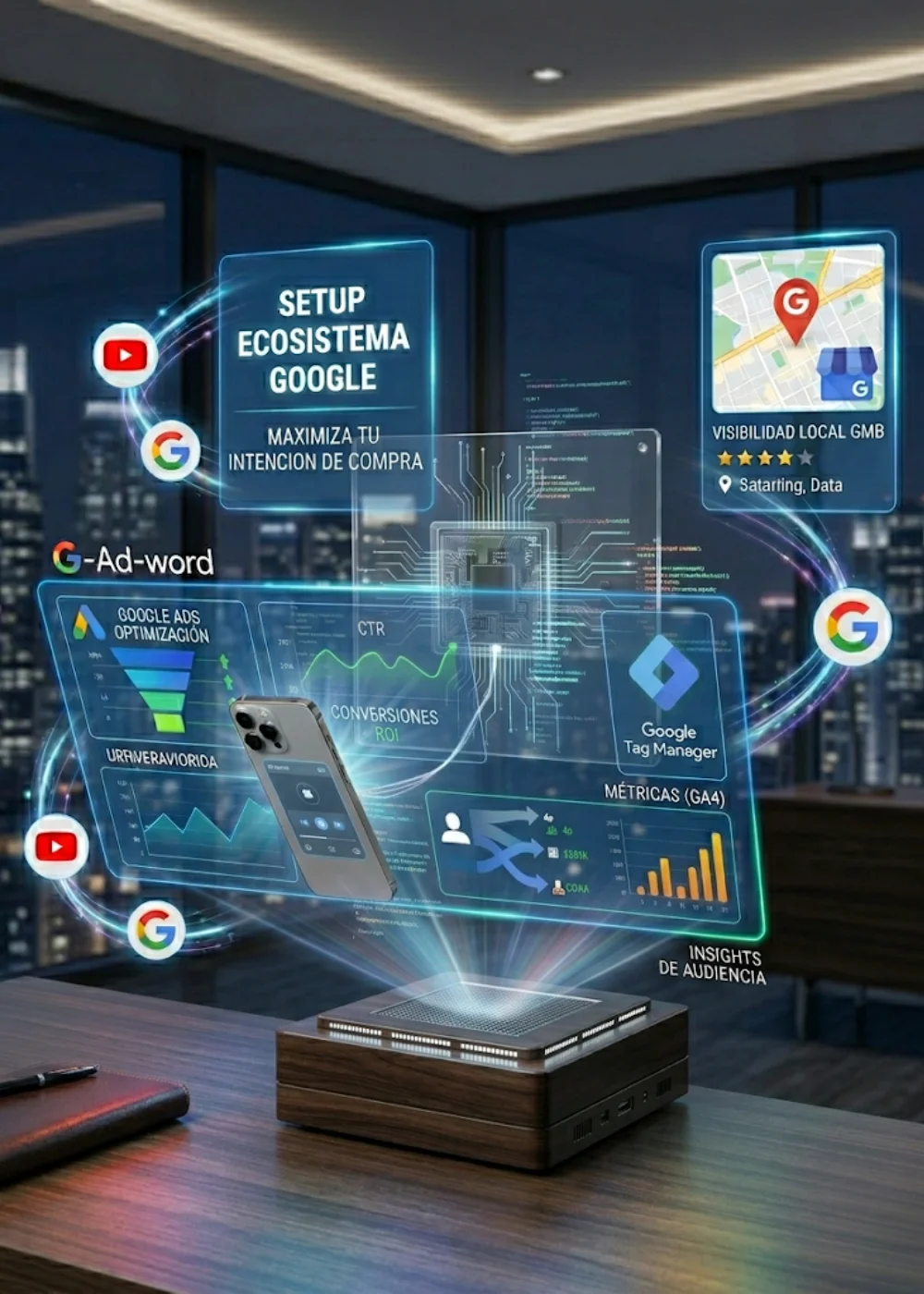 Las busquedas en Google son el canal más potente de intención de compra. Nosotros le ensamblamos toda la infraestructura técnica de grado corporativo (Google Ads de alto rendimiento, Perfil de negocios (GMB) verificado, GTM y GA4) y le dejamos su primera campaña rodando. Usted es el dueño absoluto de sus activos y solo paga por los clics que recibe.